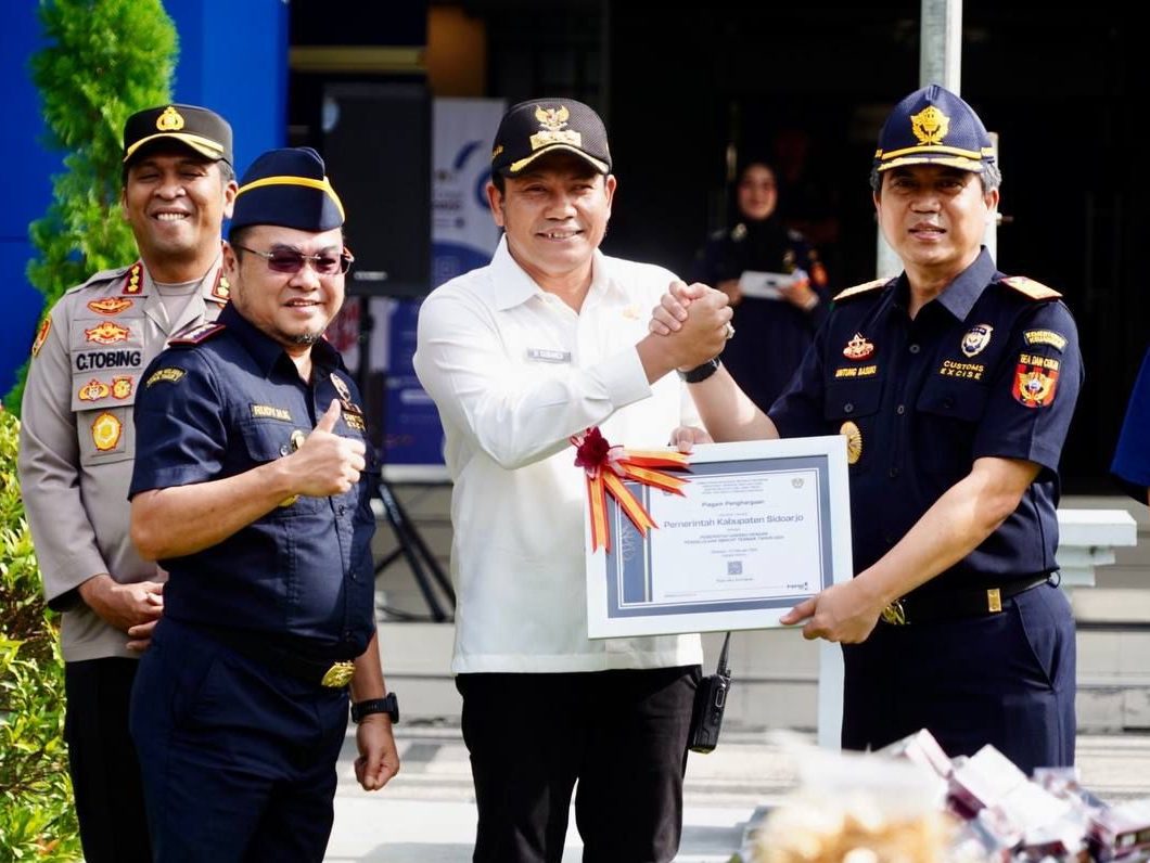 Kantor Bea Cukai Sidoarjo memberikan pengharagaan kepada Pemerintah Kabupaten (Pemkab) Sidoarjo sebagai Pemerintah Daerah (Pemda) dengan pengelolaan Dana Bagi Hasil Cukai Hasil Tembakau (DBHCHT) terbaik Tahun 2024. Penghargaan tersebut diserahkan langsung oleh Kepala Kantor Wilayah (Kanwil) Bea Cukai Jawa Timur I, Untung Basuki kepada Pelaksana Tugas (Plt) Bupati Sidoarjo, Subandi, Rabu (12/02/2025).